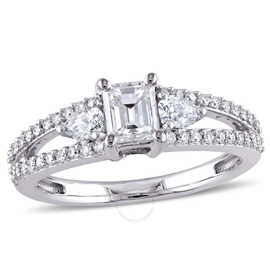 1 Ct Emerald Cut Diamond Engagement Ring. Additionally, emerald cut diamonds have a larger surface table than several other diamond cuts, so they often look larger while still being affordable. This cut makes the stone less brilliant but gives the stone a lot of depth and drama as the light and dark parts of the facets play off each other.